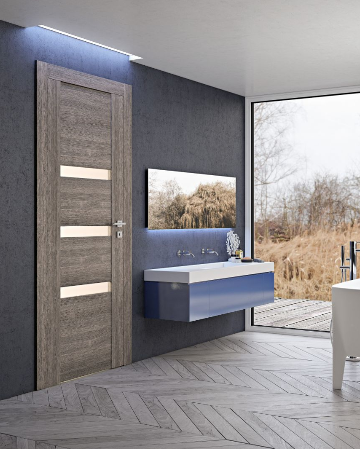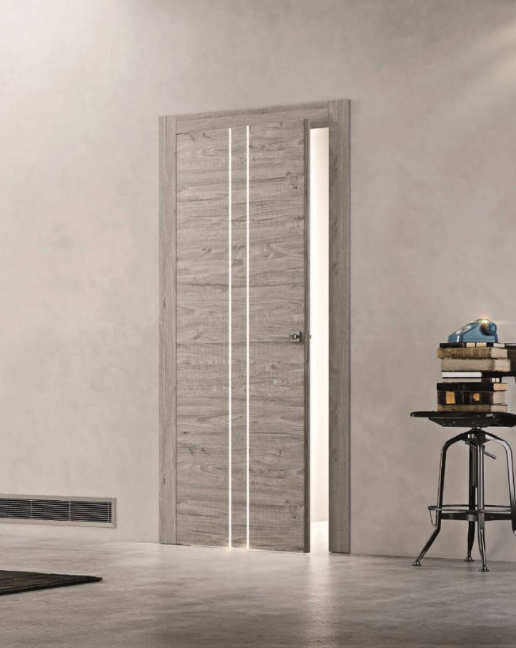 La linearità dell’effetto rovere esalta il chiaroscuro delle molteplici gradazioni di grigio e tortora, per uno stile contemporaneo e metropolitano.