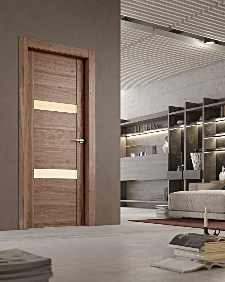 1)Geo Aosta Rovere Moka - 2)Marsia scorrevole Magic Slide Rovere Moka - 3) Marsia Rovere Moka