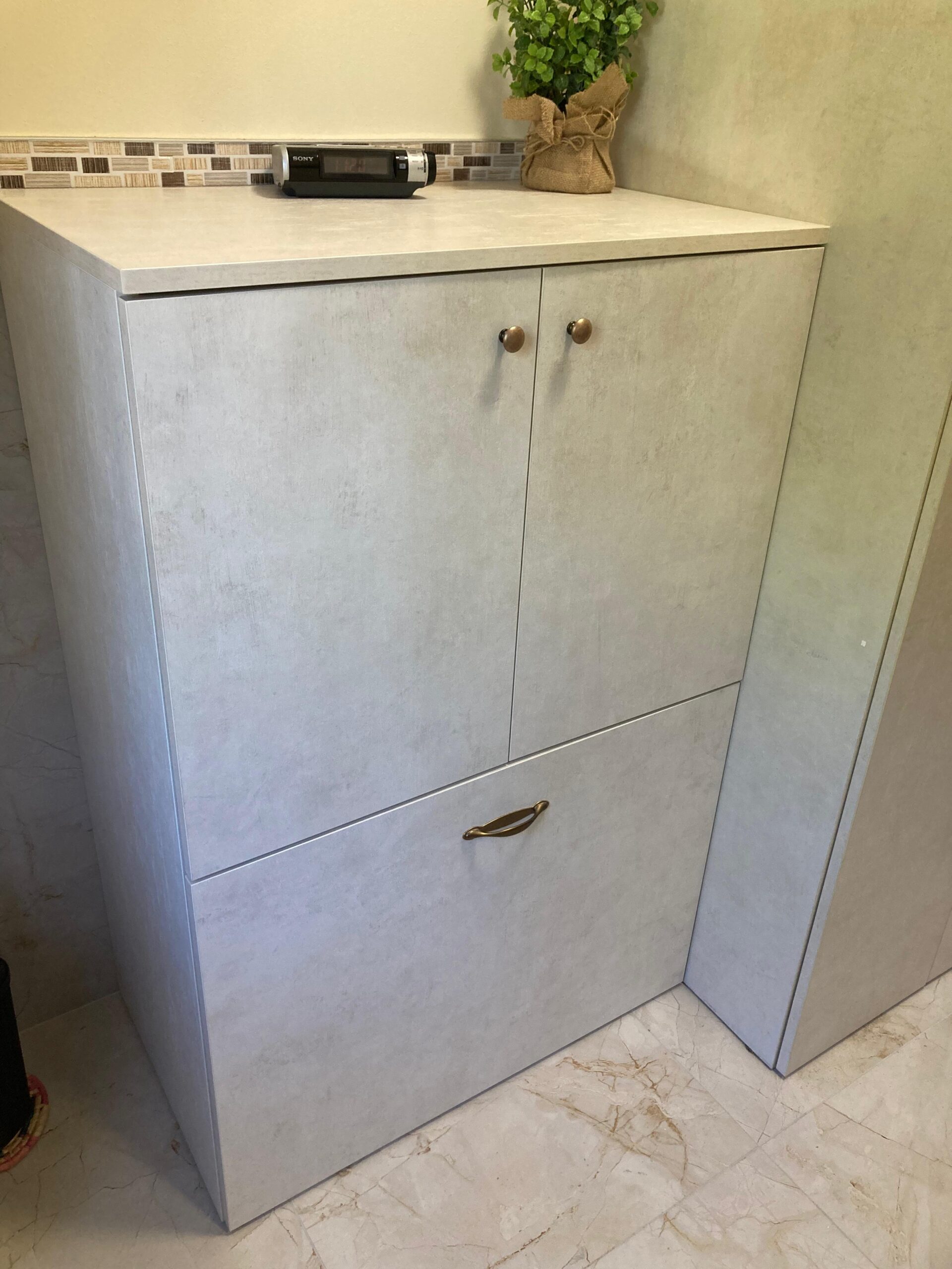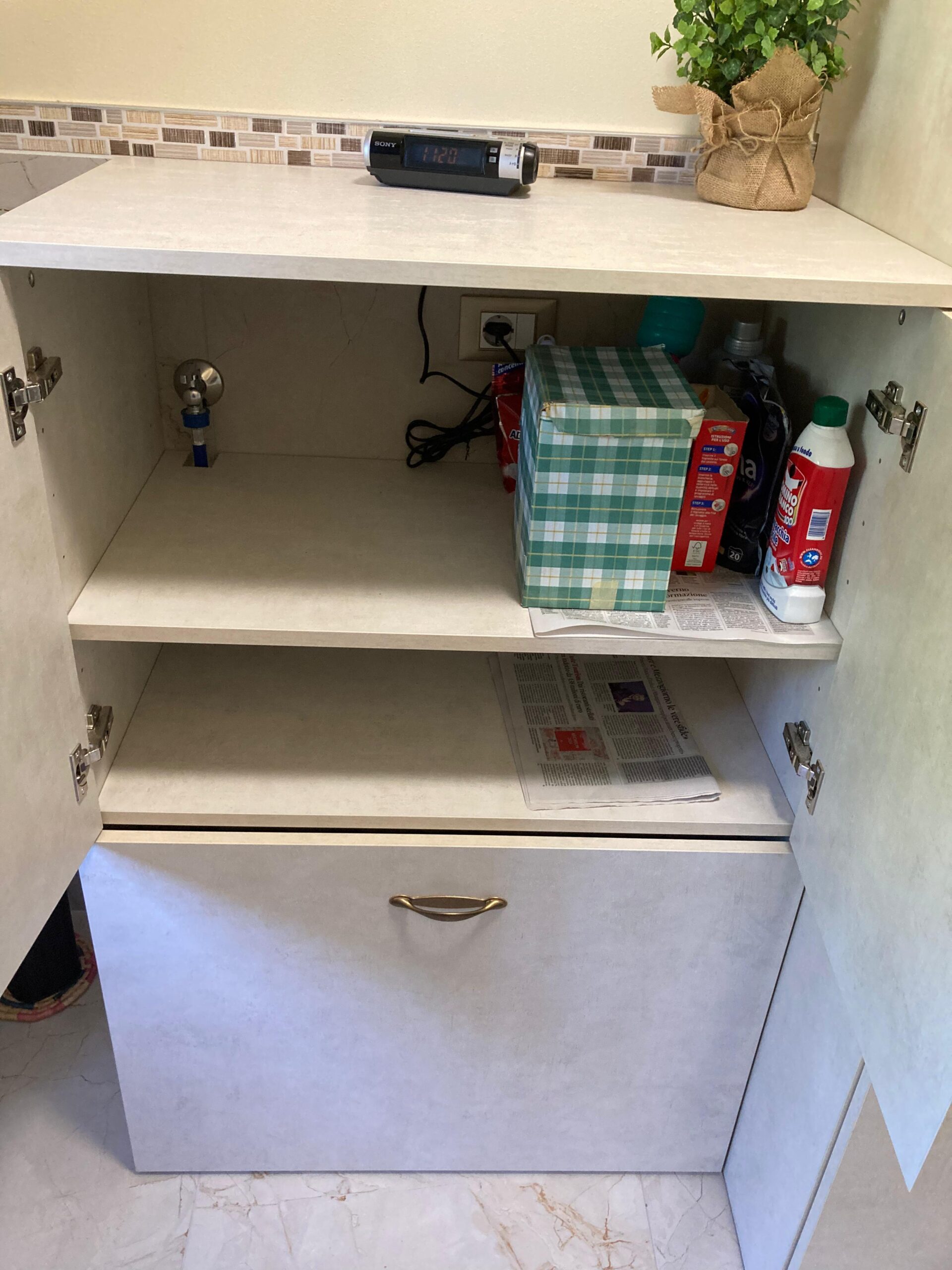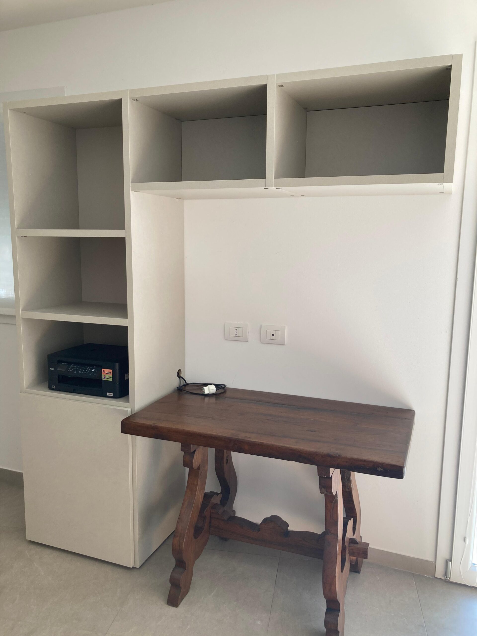 Cabina a tutta altezza in cartongesso con antine Magnolia, interno con ripiani in nobilitato sp.25mm
